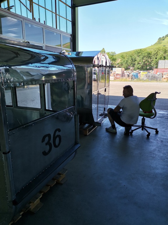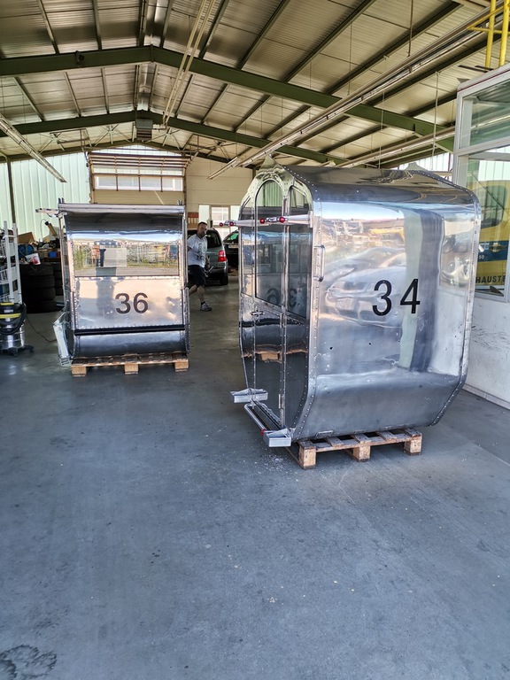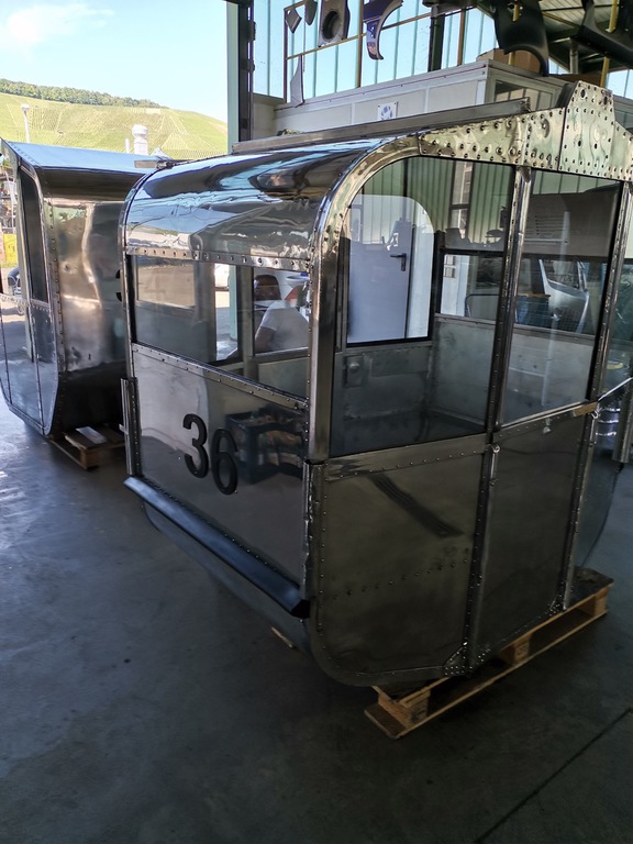Ein Kunde brachte uns zwei alte Seilbahngondeln in einem - sagen wir - nicht sehr guten Zustand. Der Wunsch war, diese zu restaurieren und "Wetterfest" zu gestalten.
