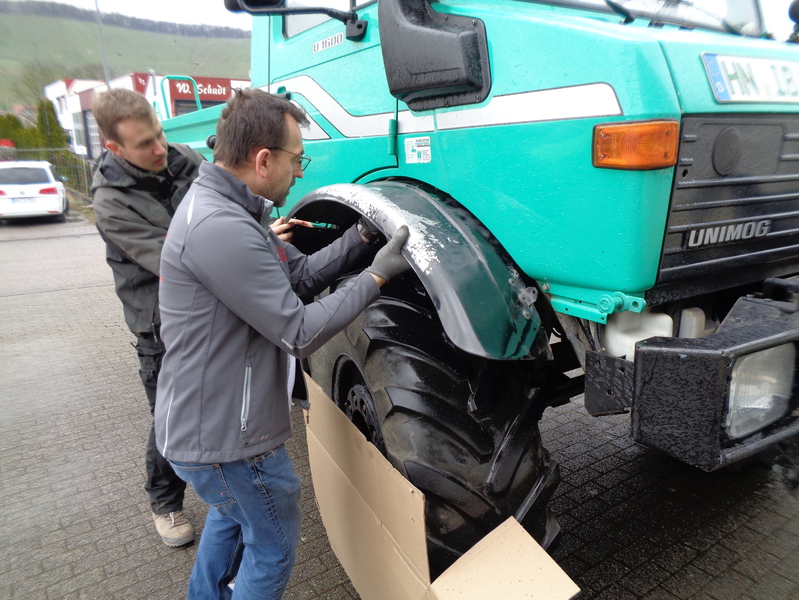 Der Kotflügel eines Unimog musste instand gesetzt werden.