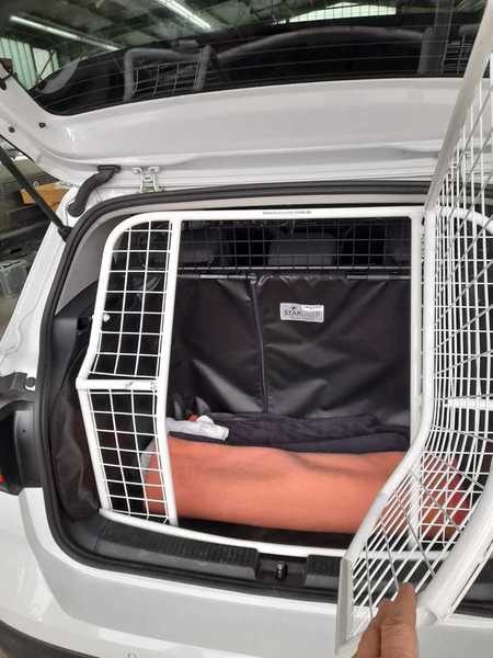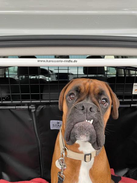 Wir haben das Gitter ganz individuell für das Fahrzeug gebaut und angepasst. Ergebnis - Hund und Kunde sind glücklich.