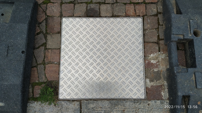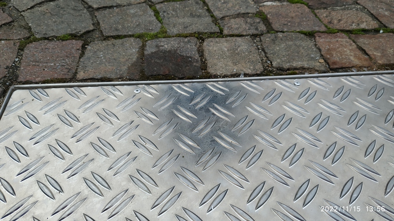 Damit niemand in´s "Loch" fällt ... haben wir aus Edelstahl eine Abdeckplatte inkl. Rahmen gefertigt.