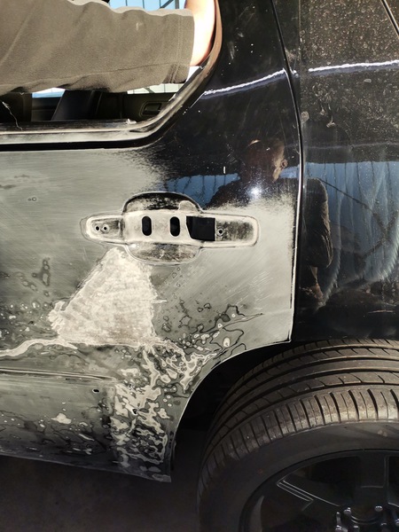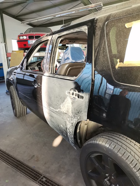 Diese Tür war so beschädigt, dass eigentlich nur ein Austausch möglich war. Leider konnte kein Händler liefern oder am Markt gekauft werden.